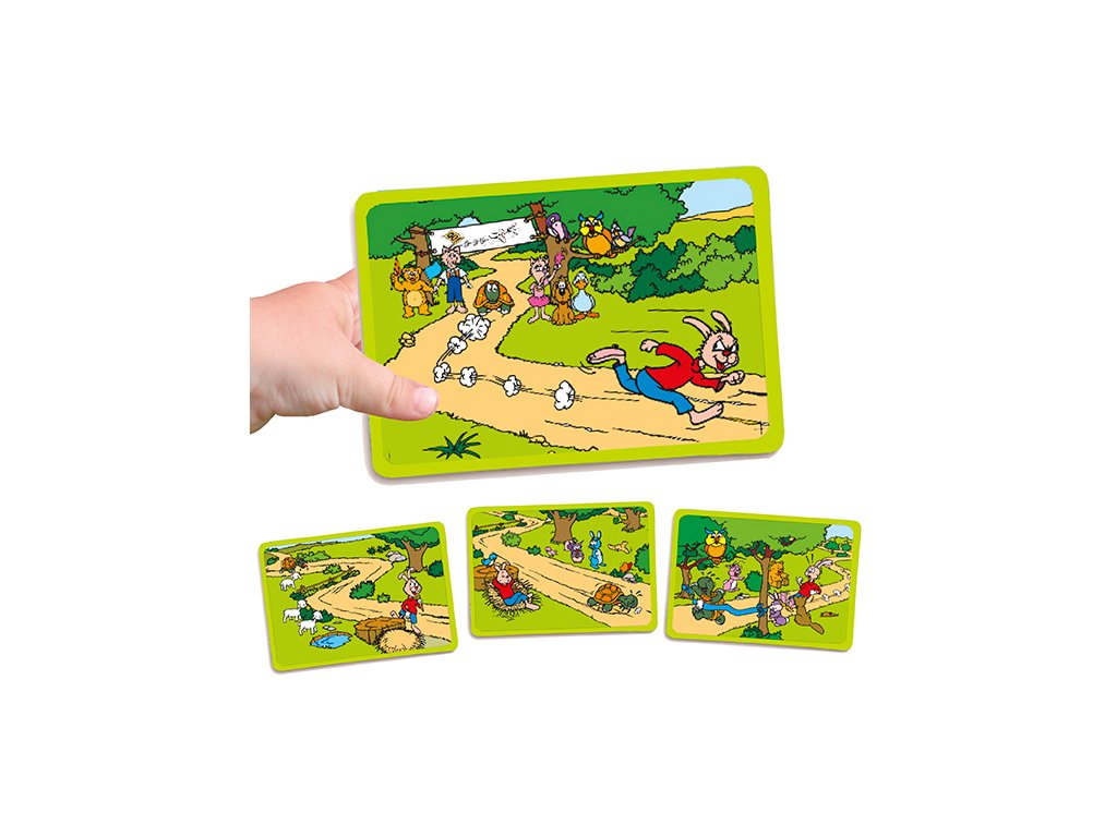 Zábavná súprava 6 posluchových príbehov s obrázkovými kartami rozvíja detskú pozornosť, logiku, pamäť aj vnímanie času.