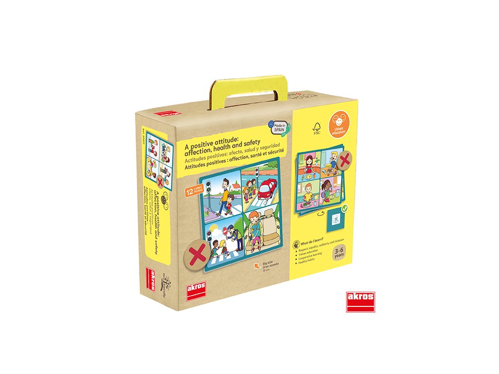 Pozri sa na 4 obrázky na každej doske, nájdi nesprávny typ správania a označ ho žetónom s krížikom. Hra pomáha objavovať hodnoty, ako sú pocit bezpečia, zdravie a vcítenie sa.