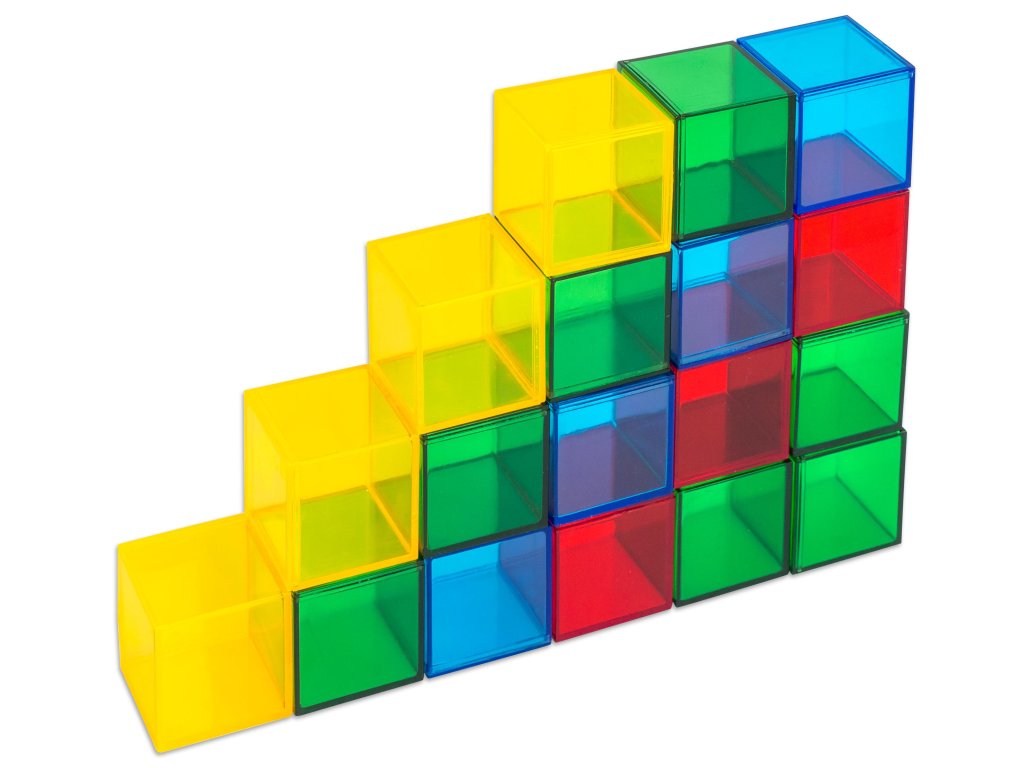 Priehľadné kocky podnecujú deti k vytváraniu jasných, farebných stavieb a pestrých vzorov na svetelnom paneli. Tým sa rozvíja jemná motorika a deti získavajú prvé matematické skúsenosti.