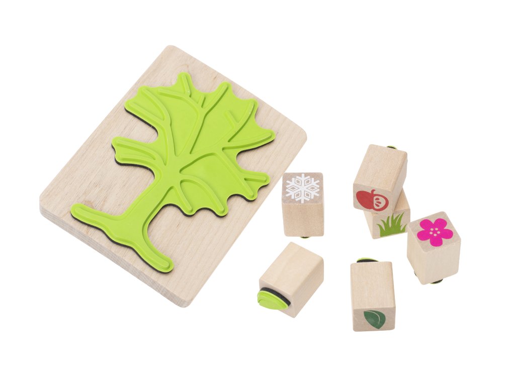 S touto sadou pečiatok môžu deti hravou a tvorivou formou objavovať zmeny v prírode počas roka. Sada umožňuje vytvoriť jabloň v rôznych fázach jej vývoja: od prvých púčikov na jar, cez zelené listy v lete a zrelé jablká na jeseň až po zimné obdobie pokoja. Kreatívne tvorenie sa tak prirodzene spája s učením.