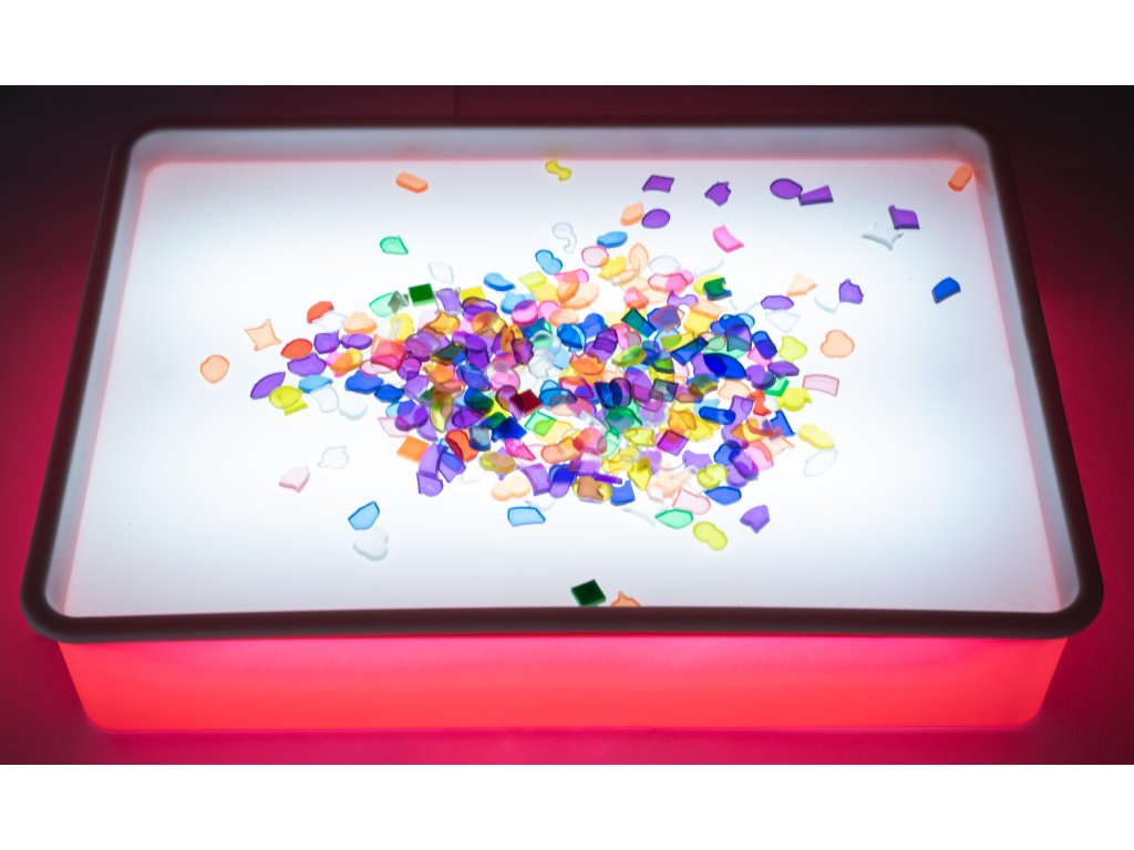 Na osvetlenej ploche je možné vytvárať umelecké obrázky so štrkom, obtiahovať kresby alebo skladať vzory a mozaiky z rôznych priehľadných materiálov. Deti zažijú rôzne zmyslové zážitky. Známe veci budú malými deťmi vnímané úplne novým spôsobom.