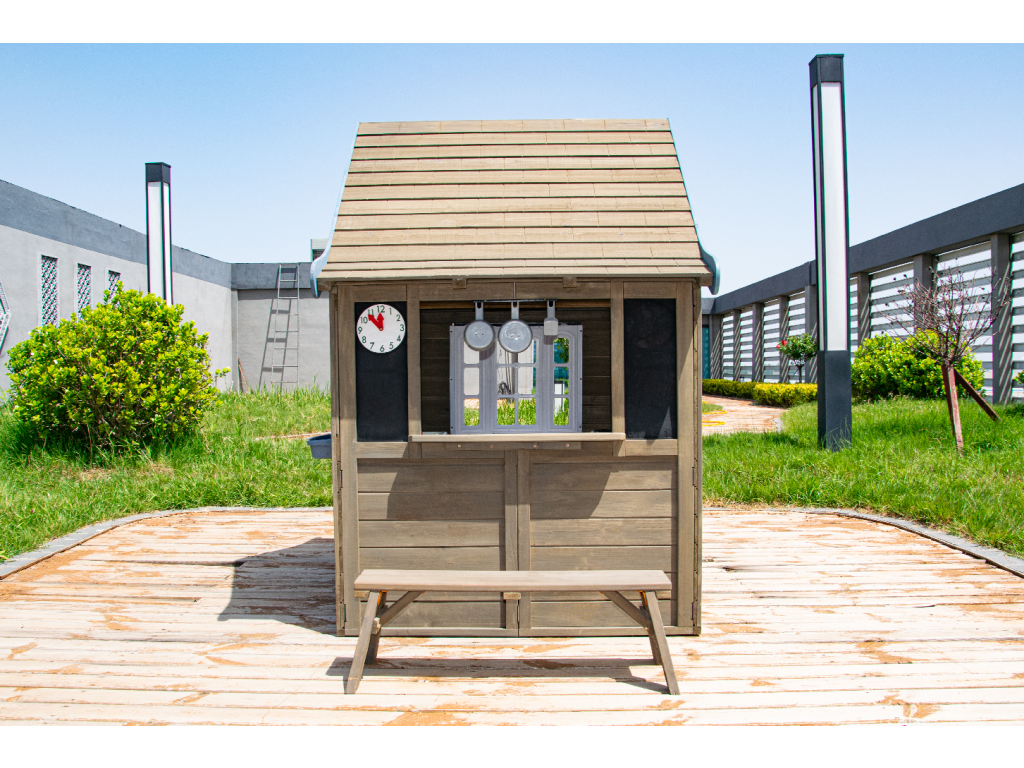 Útulná kuchynka s drezom, varičom a servírovacím pultom umožňuje malým gurmánom predviesť svoje kulinárske schopnosti. Vďaka lavičke sa o svoje pochúťky môžete podeliť s priateľmi. Na čo čakáte? Zazvoňte na funkčný zvonček a zabývajte sa.