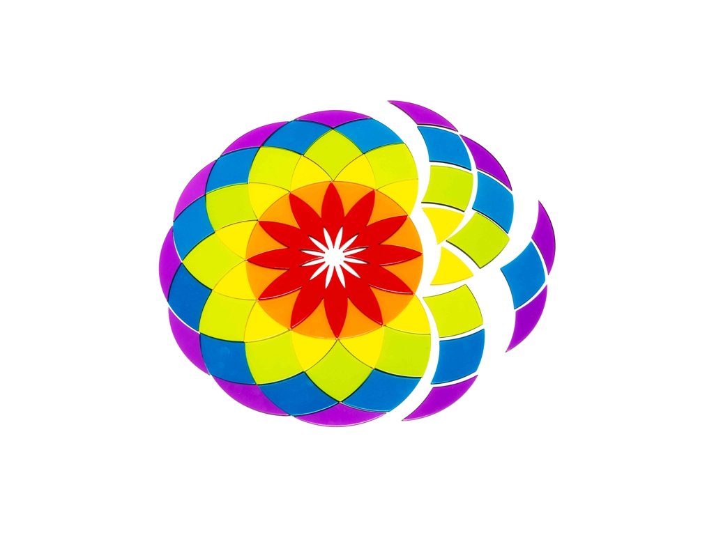 Priehľadné akrylové tvary v žiarivých farbách sú ideálne na použitie na svetelnom paneli a zaujmú intenzitou svojich farieb. Deti z nich môžu vytvárať kreatívne mandaly, farebné vzory alebo fantazijné kvety.