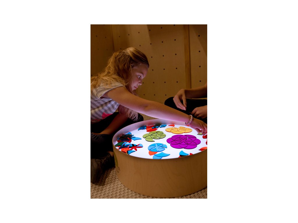 Priehľadné akrylové tvary v žiarivých farbách sú ideálne na použitie na svetelnom paneli a zaujmú intenzitou svojich farieb. Deti môžu z jednotlivých dielikov vytvárať kreatívne mandaly, farebné vzory alebo fantazijné kvety.