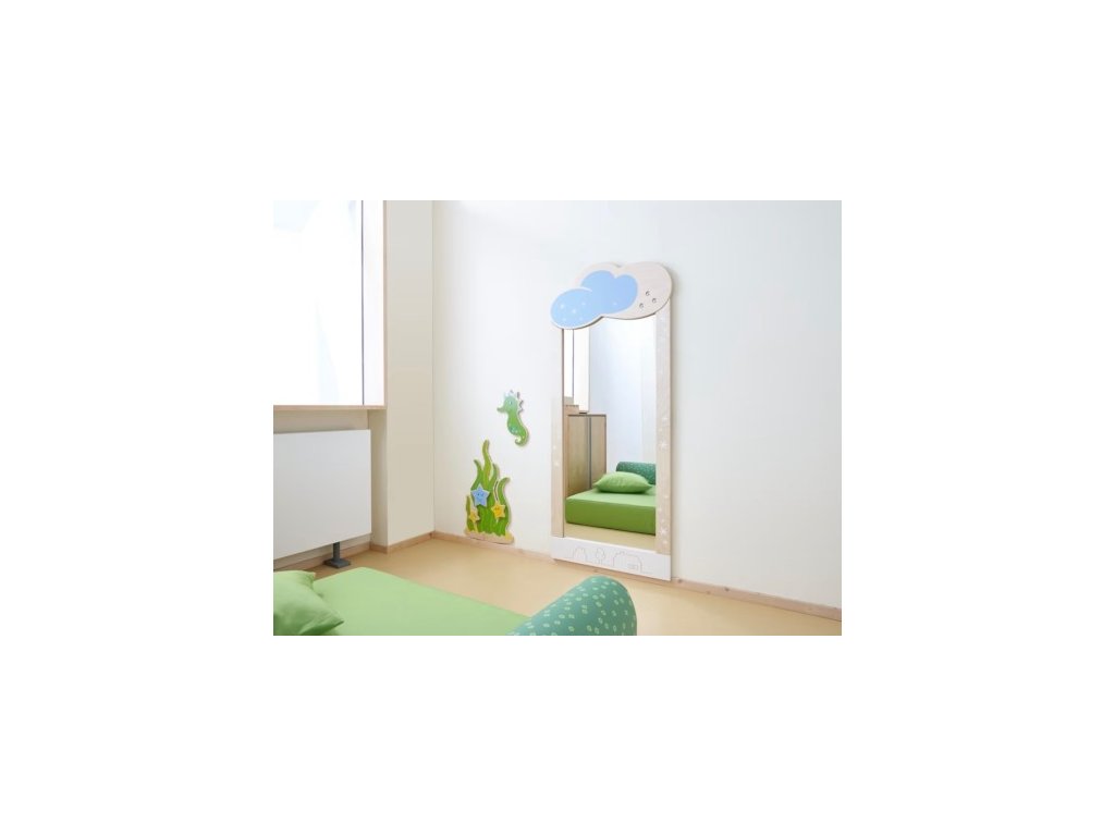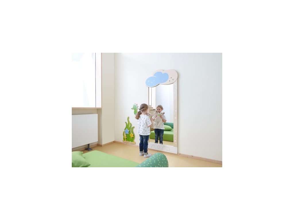 Kúzelný rozprávkový svet zrkadiel s hmatovými stopami na skúmanie, zrkadlovými šošovkami s fasetami a malými hviezdičkami. Rám zrkadla obsahuje hmatovú stopu a fasetové šošovky.